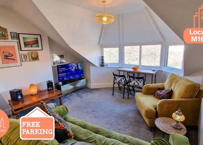 To enjoy your vacation in Manchester, stay at the spacious 65 m² Old Trafford 1 Bed By City Superhost Manchester apartment, which is 3.1 km from the landscaped Peel Park and nearly 25 minutes on foot from Old Trafford Stadium.